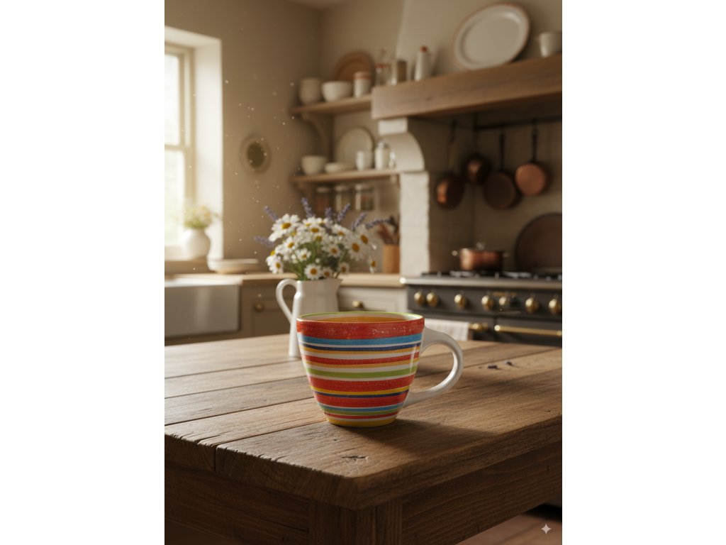 Každý hrnek je originál ručně vyráběný v Česku – drobné odchylky v pruzích jen dokazují poctivou ruční práci. Skvělý tip na dárek pro všechny, kdo mají rádi barvy, radost a dobrou náladu v každém doušku.