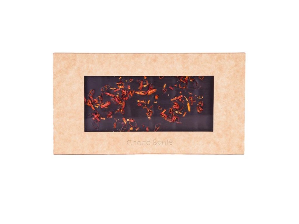 - Hořká čokoláda s chilli papričkami: Pikantní chilli zajímavě doplňuje jemnou hořkost této čokolády.
