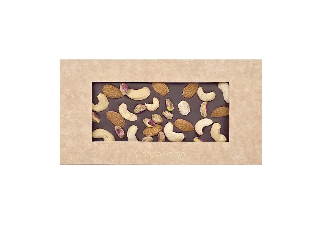 Objevte prémiovou kolekci ručně vyráběných hořkých čokolád od Choco Bonté. Každá tabulka je jedinečným uměleckým dílem, které vzniká v chráněné dílně v Olomouci. Tyto hořké čokolády se vyrábí v malých sériích, s důrazem na pečlivý výběr surovin a ruční práci. Všechny originální čokolády propojují intenzivní chuť kvalitního kakaa s nápaditými kombinacemi surovin, které podtrhují její jedinečný charakter. Ať už sáhnete po klasice s ořechy, ovocném osvěžení nebo odvážné příchutí s chilli, vždy vás čeká nezapomenutelný zážitek.