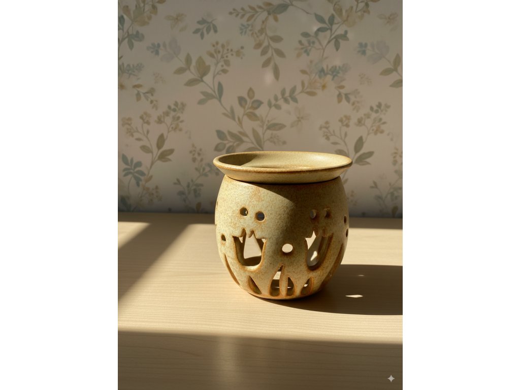 Aroma lampa se skládá ze dvou částí – miska na vodu a esenciální olej + spodní část pro čajovou svíčku. Stačí zapálit svíčku, nakapat pár kapek oblíbeného oleje a nechat se unést příjemnou vůní, která provoní celý váš domov.