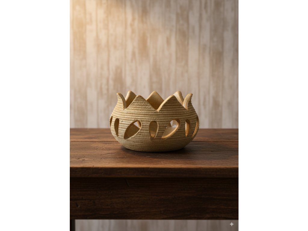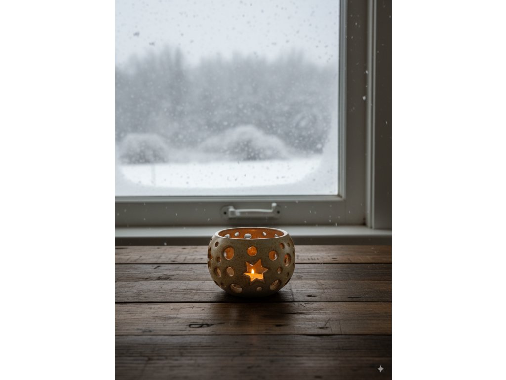 Do svícnu stačí vložit čajovou svíčku, zapálit a sledovat, jak hvězdičky a otvory vykreslí po stěnách magické světelné vzory. Perfektní pro večerní relax, romantickou atmosféru i zimní pohodové chvíle.